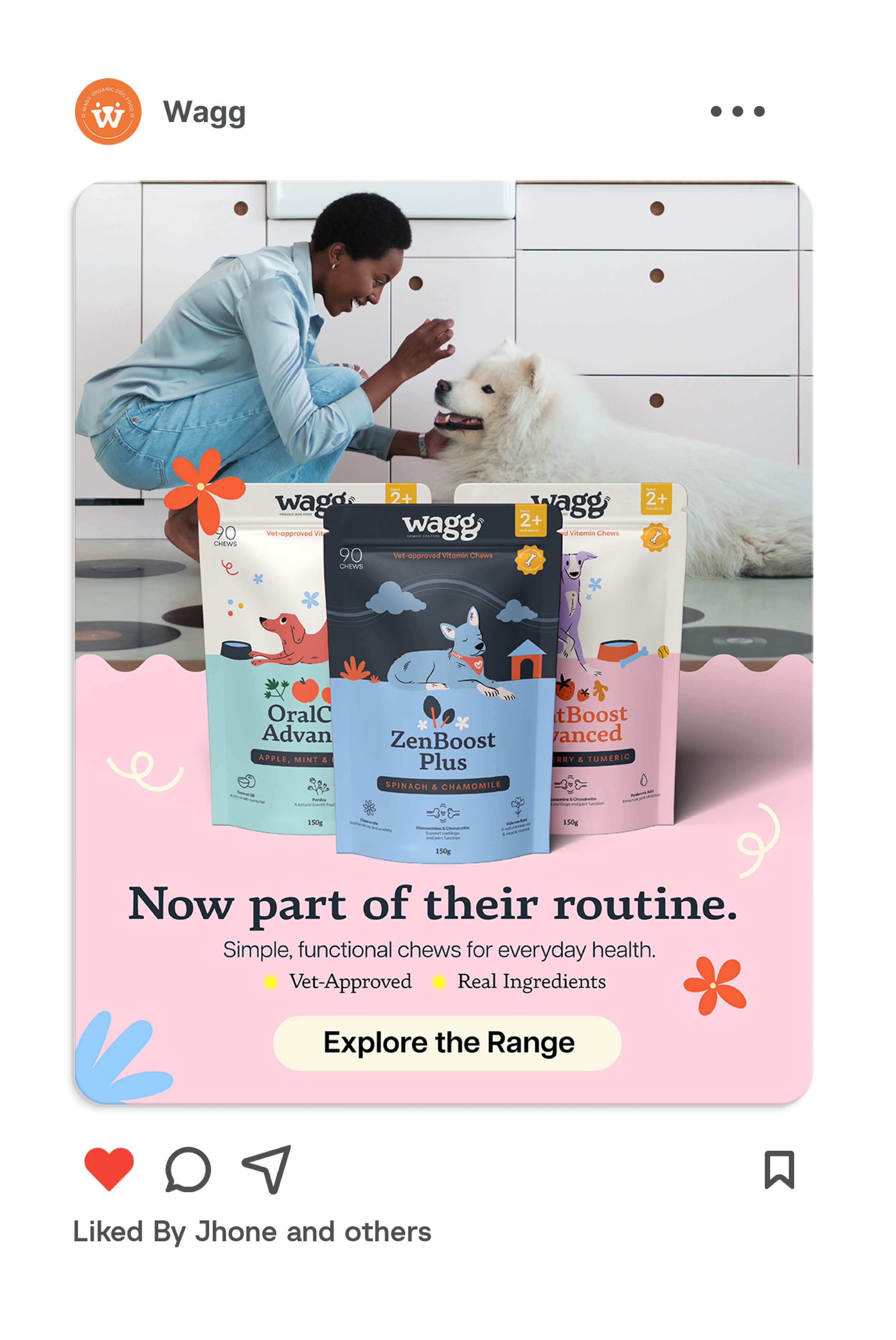 A bold, fresh take on organic pet nutrition — transforming Wagg into a brand that feels joyful, modern, and confident while staying affordable and honest. The brand core values are to deliver clean, organic ingredients, ensure real value for pet owners and harness a playful personality rooted in dog’s everyday joy.